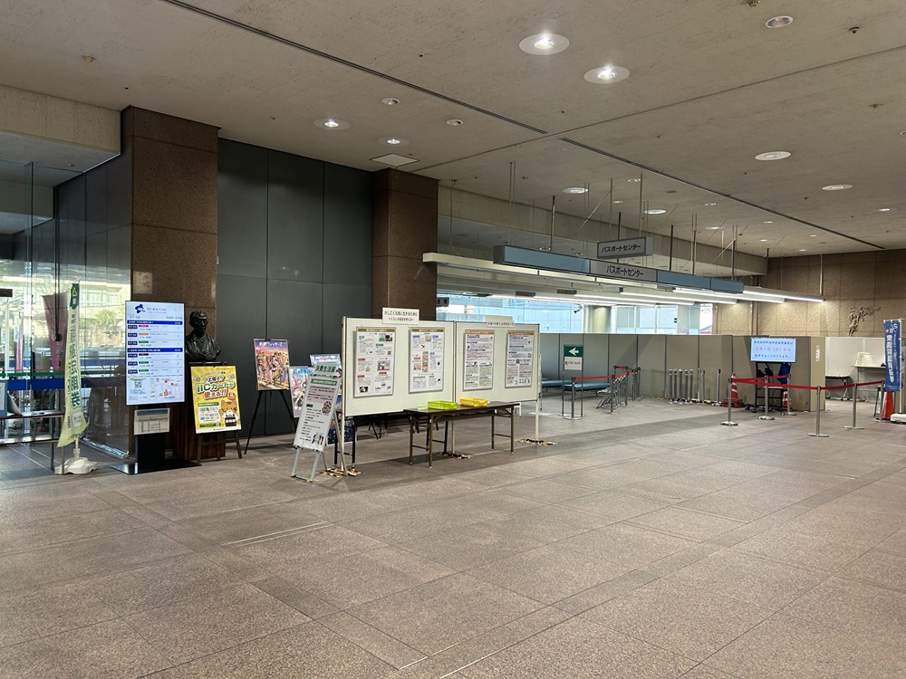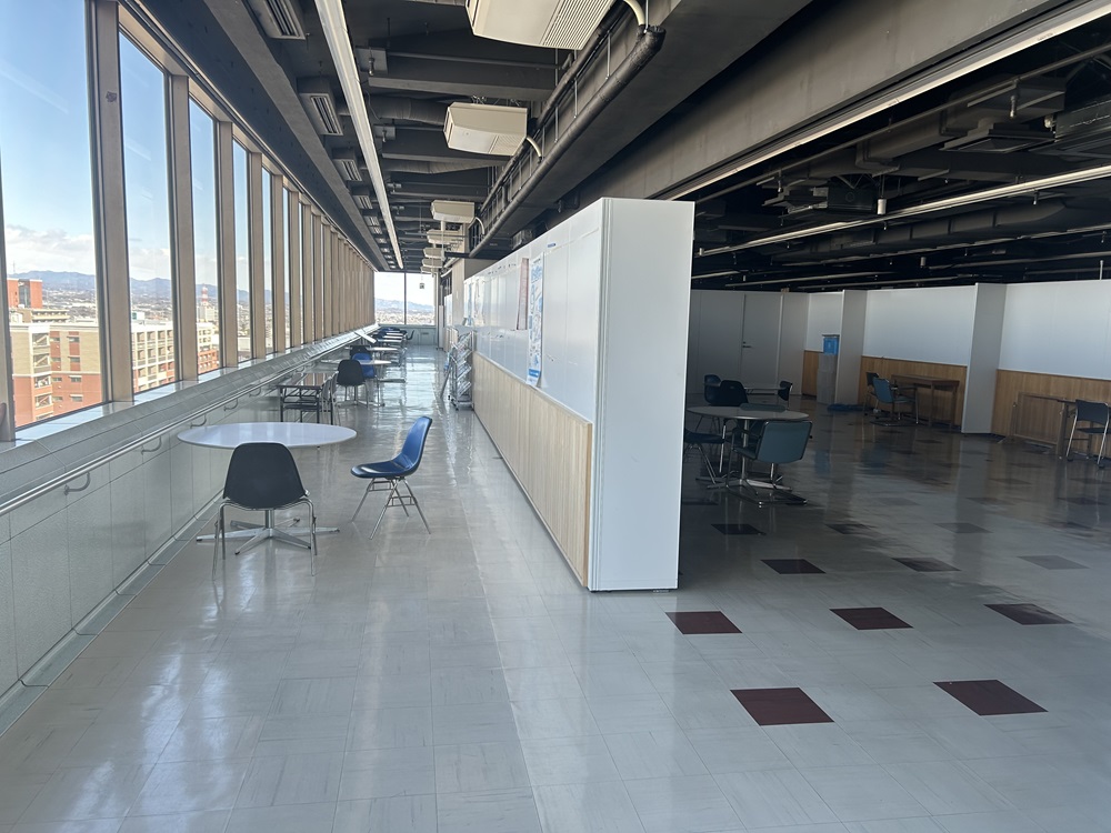 1階市民ロビー、12階展望ロビー、庁舎北側駐車場、議会棟駐車場